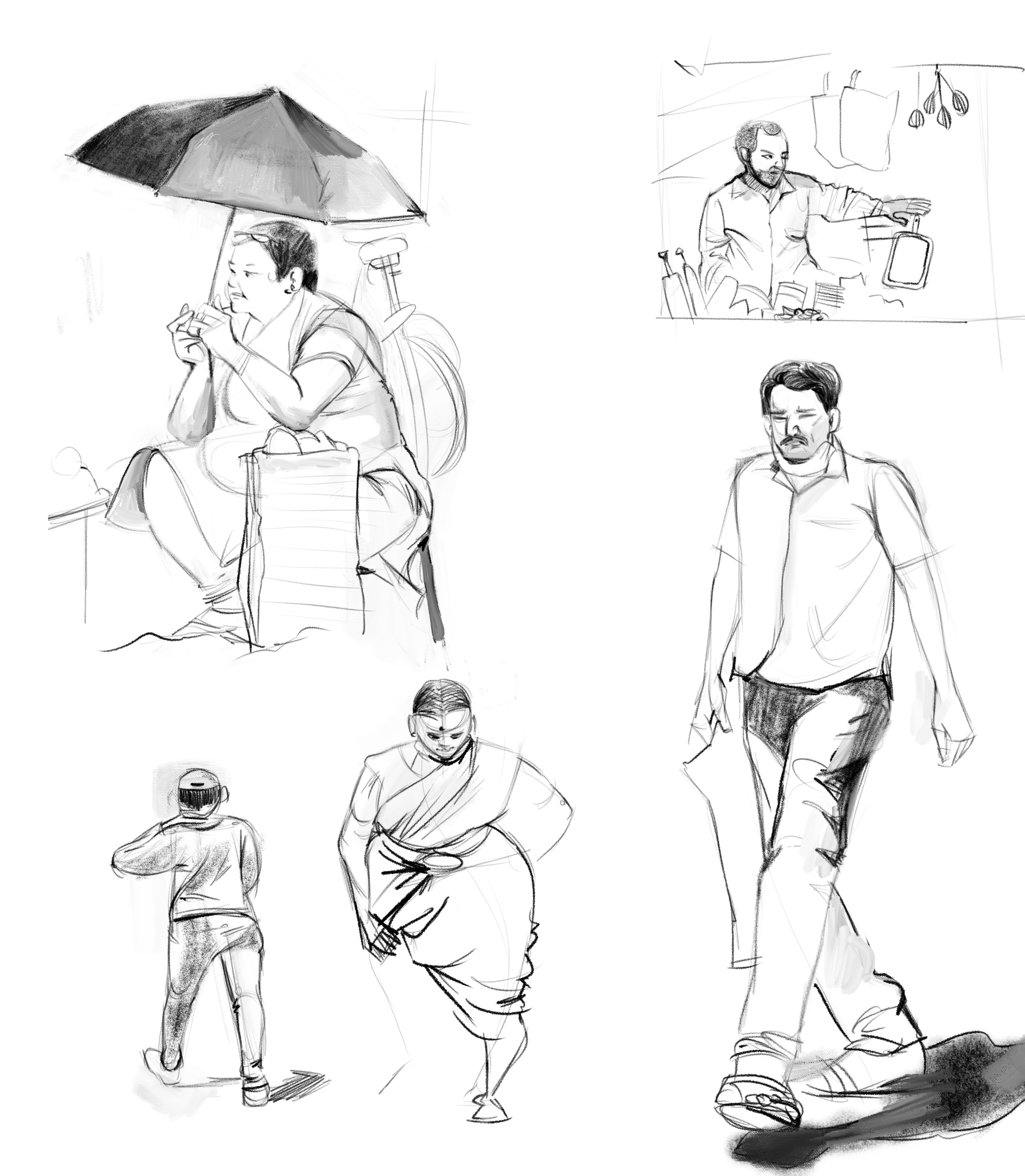Right before NID, I pushed myself to develop urban-sketching skills and studied people, motifs and architecture in Sawantwadi, my hometown. Above is the result of the same.
